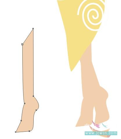 12、用“鋼筆工具”繪制如圖13a所示的路徑,作為女孩的腳和腿,填充顏色為淺膚色(c:3,m:15,y:24)。