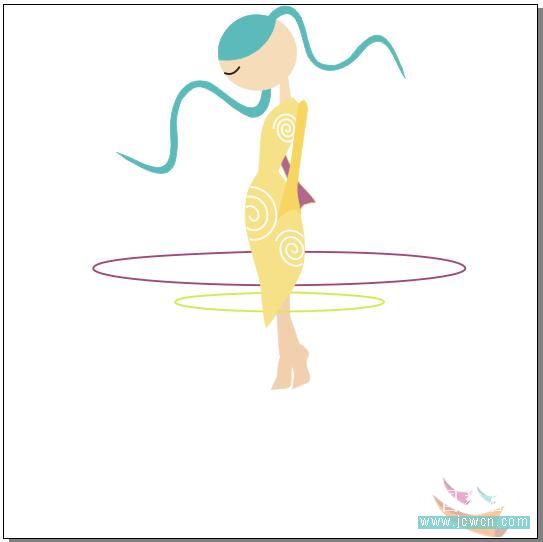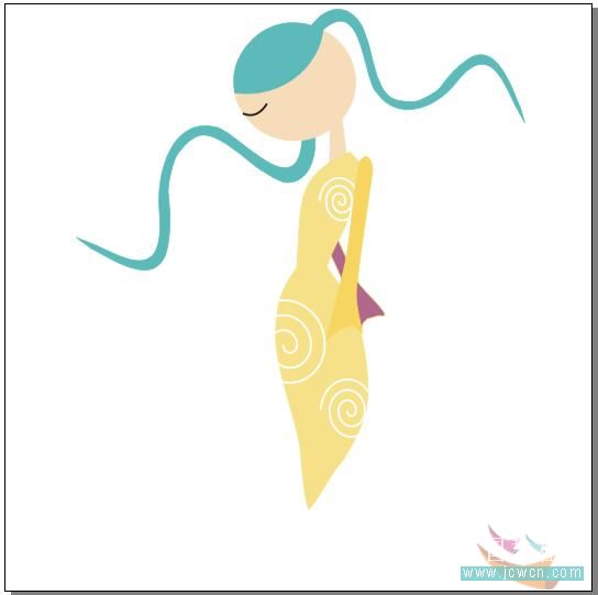 11、將繪制的胳膊路徑復制一份,并對其進行適當旋轉,然后將填充顏色更改為紫紅色(c:15,m:60,k:15),連續按“ctrl+pgdn”組合鍵,將復制的胳膊路徑徑調整至裙子的下方,最后用“橡皮擦工具”,將左上角多余的部分刪除,效果如圖12所示: