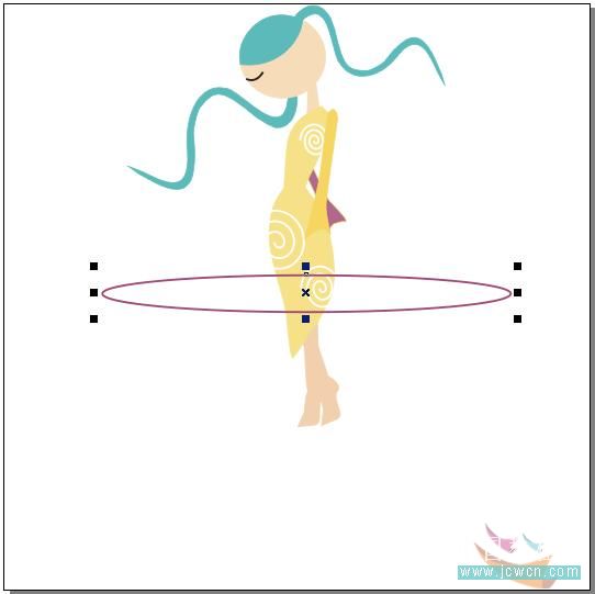 13、下面來添加一些裝飾。用“橢圓工具”繪制如圖14所示的橢圓路徑,設置無填充顏色,描邊顏色為紫色(c:20,m:80,k:20),粗細為2。