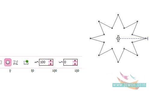 2、然后用變形工具——拉鏈變形工具 將8邊形調為星形