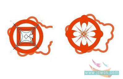 4、再點交互式變形屬性欄上的添加新的變形 ,再將鼠標移到已變形的8邊形的中心,按住左鍵,往左上角拖(不要旋轉),看到有鳳凰模樣的雛形就放開。