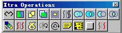 blend是freehand9最重要的效果之一,他不僅能作用于兩個對象間,也可以作用于多個對象(這些用于混合的對象必須具有相同的屬性),造成柔和諧調的過渡、精巧別致甚至于嚴格寫實的效果。blend實際上是在兩個被選對象之間設置一些過渡,這種過渡可能表現在形狀上,也可能表現在色彩上,或者兩者兼顧。以操作中的星形與圓形來說,執行blend會在兩者間設置一些由星形變為圓形的圖形,并且色彩由綠色逐漸變為黃色(輪廓線由黃色逐漸變為綠色)。該工具可以通過xtra operations面板如圖23中所示。