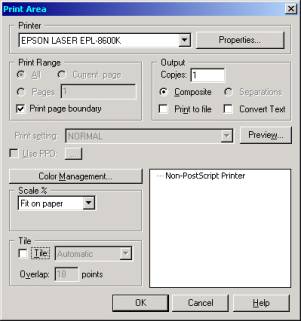 當鼠標指針移到矩形框的內部時,指針變成了箭頭加打印機的形狀,此時單擊鼠標便可打開print area(打印區域)對話框,如圖13所示。