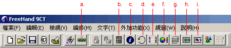 | c. 對象控制工具及其它 | f. 調(diào)色盤 | i. 外加功能工具箱 |