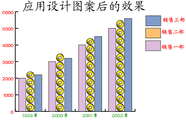 理解了上述選項(xiàng)的含義,就可制作出多種多樣的自定義圖表了。如圖14是應(yīng)用了定義的金錢圖案的效果。