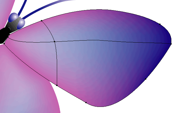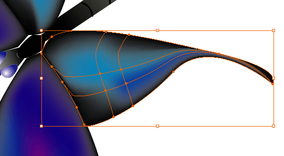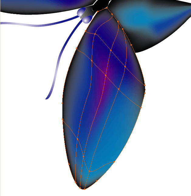 五.注意進行網絡漸變的部分是邊一定是無色的。選擇網格漸變工具,點擊一個翅膀,