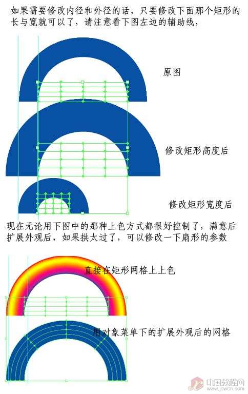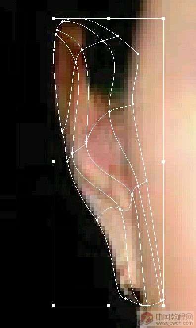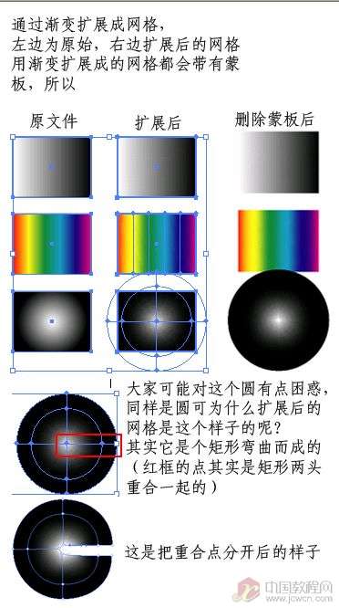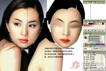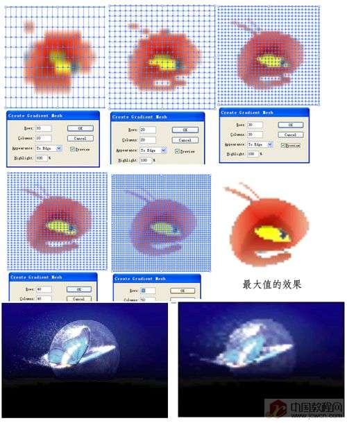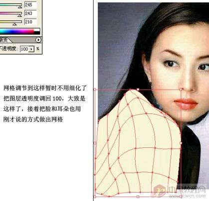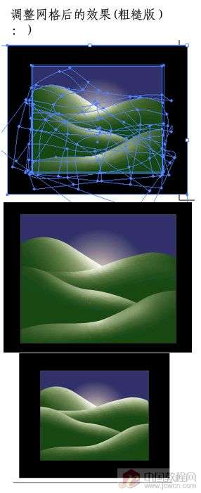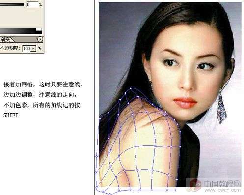 (注:在用網格工具時按shift點擊可以添加不受前景色影響的網格線,按alt點擊可以刪除網格線,按ctrl可以臨時轉換成上次使用過的選取工具)圖中的黑圈是鼠標單擊點,要注意單擊點對網格造成的影響.