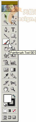 從wacom的網站上面查到,ai的paintbrush從7.0版本就開始支持壓感筆了,真是歷史悠久。可惜你只有買了手寫板以后才能夠體會它的強大功能。這個著名的工具你可以在ai的工具條上面找到它 ,當然你也可以用鍵盤快捷鍵(b)來啟用它。