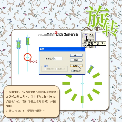嘟嘟蟲:學過illustrator的人都一定記得旋轉工具,但大部分人都只用它進行簡單的旋轉工具,殊不知它還能做出很多漂亮的效果。 今天就從最簡單的時間刻度開始,大家一起玩轉ai的“旋轉工具”。