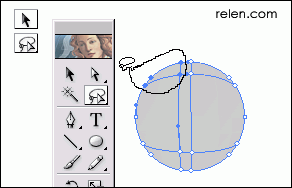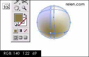 按【v】使用選取工具(黑箭頭),點中我們繪制好的圓形,然后【q】使用直接選取鎖套工具,選擇如下圖的點,并且改變顏色。