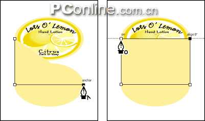 從工具箱中選擇直接選取工具,選擇檸檬圖案中最外邊的淡黃色橢圓形。按住alt+shift(windows)或option+shift(mac os) ,用鼠標(biāo)拖動(dòng)橢圓向下移動(dòng),在橢圓原件的下方建立一個(gè)副本。調(diào)整副本的擺放位置,直到智能輔助線顯示副本處于原始圖形的正下方。(圖02)