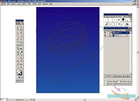 4.現在開始繪制滿天的星星。先打開window>layer或按f7打開layer面板,按面板上的新建按鈕,建立一個新層。選擇pencil tool工具,將前景色關閉,在畫面上隨意的畫圈。
