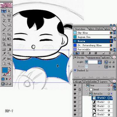 7.選中填充denim的藍色路徑。(圖f-7所示)