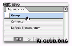 4.下面一步是整個步驟的關鍵,將輪廓按ctrl+g群組,打開appearance面板,選中group,將下面的new art hasbasic appearance按鈕點中。這樣能保證前面的透明性步驟徹底應用。