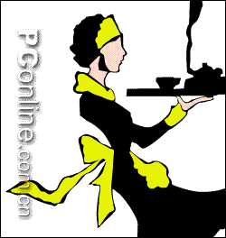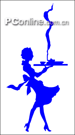 9.衣服完成之后,剩下的就是其它的部分了。你需要對托盤和茶杯分別上色,為了使圖像更生動,你可以點綴茶壺茶杯。用淡青色填充水汽。需要的話,還可以改變女子頭發的顏色。別忘了,還有耳環。最后,將填充色設為無,用不同寬度的輪廓線勾出眼睛和嘴唇的形狀。(圖11)