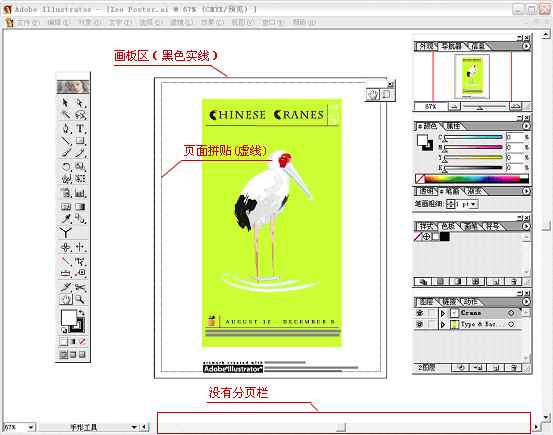 對(duì)矢量制圖軟件有所了解的朋友,一定知道沒有類似coredraw ,pagemaker等排版軟件界面下方狀態(tài)欄處的分頁欄(如圖一),但這不代表illustrator無法制作分頁哦!