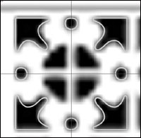 8. 如果你想保留這個(gè)基礎(chǔ)圖形,我們可以復(fù)制這個(gè)圖層,并隱藏該圖層。在原圖層下面建立一個(gè)圖層,繪畫一個(gè)36×36的正方形,隱藏幾個(gè)圖層,只顯示這兩個(gè)圖層,全選所有圖形,打開“pathfinder”面板,單擊“exclude overlapping shape areas(挖空)”按鈕,獲得第一個(gè)圖案,如圖5所示。
