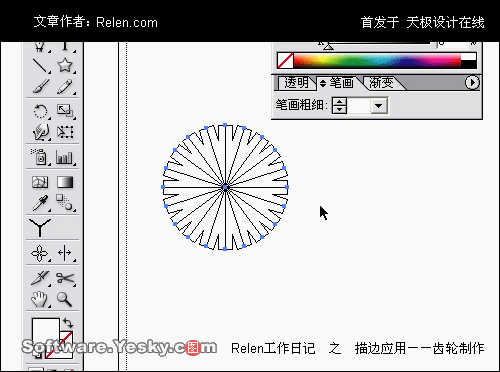 (也就是說,原來的放射線條轉換為外框路徑)這時的星形就不見了,完全變了鋸齒。