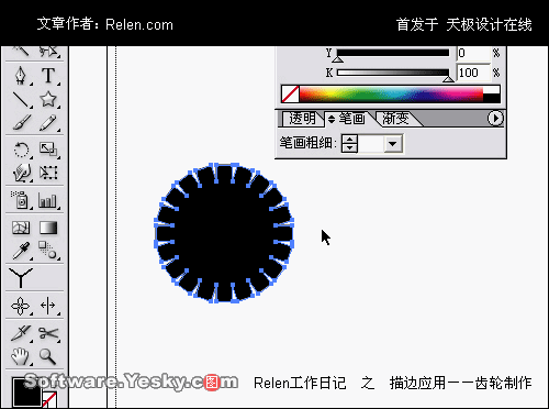 再次選擇這個齒輪,在菜單中選擇 對象>路徑>筆畫輪廓