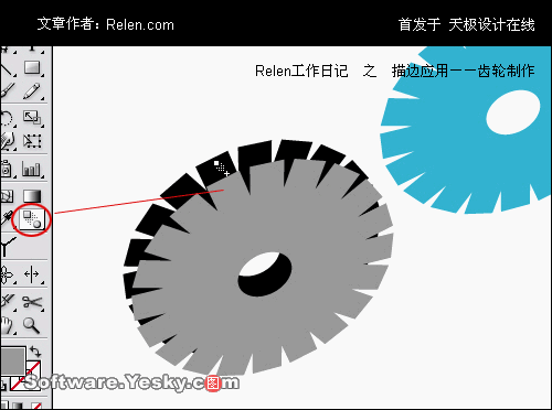 選擇混合工具對兩個齒輪進行色彩混合。