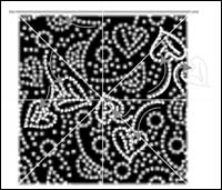 注:葉子是這幅圖案的主體,有的葉子向上,有的葉子向下,形成一種旋轉生長的運動的旋律,因此,這幅圖案的生動之處,就在于它的運動旋律,將春暖花開生機盎然的自然景色演繹得非常準確。這幅圖案不是對稱型的。圖案中葉子多的上半區,花朵少,葉子少的下半區,花朵多,因此,整個圖案呈現出均衡型。