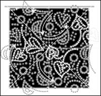 5. 建立新圖層,命名為“走向”。從工具箱中選擇“pen”(鋼筆)工具,沿著圖案中的葉子的弧度,繪畫弧線。選擇菜單“effect→stylize→add arrowheads”(效果→風格→加箭頭)命令,為弧線添加箭頭,如圖1所示,鎖定該圖層。