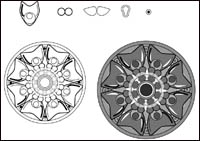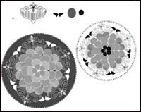 所謂團(tuán)花圖案,就是將圖形沿特定軸心作圓周布列。古今中外的團(tuán)花圖案可謂多種多樣、異彩紛呈。提供的“pattern brush(圖案筆刷)”工具可以迅速準(zhǔn)確地進(jìn)行團(tuán)花圖案的繪制。你只需選定特定的圖形,在“brush(筆刷)”面板選擇“ new brush(新筆刷)”,然后選擇“pattern brush(圖案筆刷)”就完成了初步設(shè)置。現(xiàn)在,你可以繪制一個正圓形,將剛才定義的圖案筆刷賦給其輪廓屬性即可。