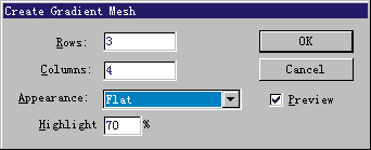 注意:你不能從復合路徑,文本,鏈接的eps圖形中生成漸變網格。而且物體一旦轉換為網格,則無法變回原來的物體。