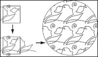 6. 選擇全部圖形,在編輯菜單下點選“define pattern(定義圖案)”。矩形框架范圍以內的圖形將成為一個完整的、無縫拼接的四方連續圖案,你可以將其填充到任意形狀的圖框中去。