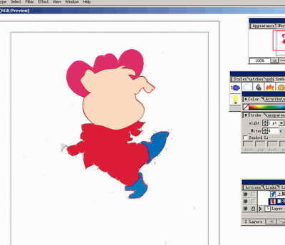 2、然后分別將身體的大部組件分別描繪成閉合區域(因為要填色嘛,當然要描繪成閉合的了),這里注意千萬不要盯住一個細節描,不是越細越好哦,有時候反而會影響到整體效果。好,我們現在將豬頭:)、豬腳、帽子等描出來了。