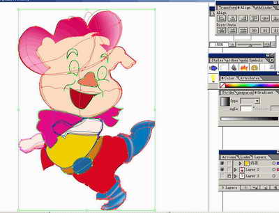 3、接下來呢,對描繪好的著幾個部分填上基本顏色,因為在后面要在這些區域里做復雜的網格漸變,沒有基色難道一點一點去填?(廢話,偶也知道,你當偶時白癡啊)