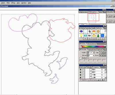 這里還要注意一點,描繪不同的部分的時候最好用不同顏色的線條進行描繪,這樣可以避免在以后填色中的很多麻煩。不信?親手做一做就知道是真是假了。
