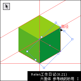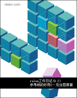 想要生成如卷首的六面體組合,依舊是利用設置的參考線,以及智能參考線。怎樣?看過之后,你可以把他們直接導入flash或photoshop里,加工完善,感覺不錯吧:)