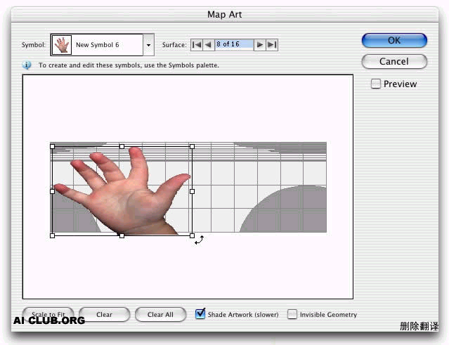 10.現在要給玻璃杯加上一個手的影子,先將一張手的圖片定義為symbol,在打開map art進行貼圖,設置如下