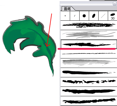第十一步:選擇外形邊框,同樣切割為兩條路徑,然后施加畫筆效果。然后編輯成組,一片葉子完成。