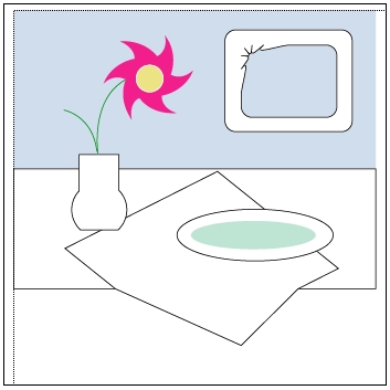 同樣的方法色設置花心圓的顏色為c=8、m=8、y=46、k=0且邊線為白色;花瓣的顏色為c=0、m=90、y=0、k=0且邊線為無色;盤子內圓的顏色為c=26、m=0、y=13、k=0且邊線為無色;花枝的填充色為無色且邊線色為c=100、m=0、y=100、k=0,如(圖21)所示。