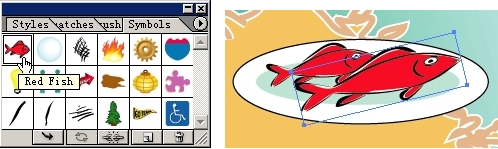在符號選項面板中選擇符號red fish(紅魚),并將其拖動到盤子中。