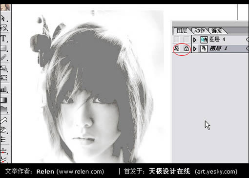 把黑白圖片托拽入illustrator中,找到它所在的圖層。鼠標放置在圖層面板的此圖像的圖層上,雙擊。
