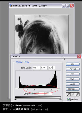 輸入快捷健[ctrl + l],調(diào)入levels面板。把色彩值略微調(diào)整一下。注意對照畫面,選擇適當(dāng)數(shù)值。