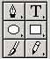 仔細(xì)察第二個(gè)箭頭我們會(huì)發(fā)現(xiàn)在它的有下角有一個(gè)向右的小箭頭,按住這個(gè)按鍵幾秒鐘就會(huì) 彈出一個(gè)隱藏的工具——組選工具 ,它的主要作用是可以一下子選中物體上的所有節(jié)點(diǎn)。 在選取工具下面就是我們以后再繪圖時(shí)經(jīng)常要用到的繪圖和文字工具。這里包含了六