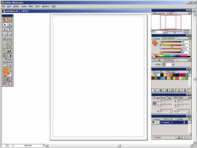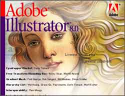 安裝就不多說了,最激動(dòng)人心的時(shí)候到啦,(眼睛睜大點(diǎn))啟動(dòng)軟件最先看到的是logo,是不是很美,她就是用illustrator繪制的,是不是很讓你很吃驚,這幾乎可以和手繪的亂真。 她看不到通常矢量繪圖軟件的通病——過渡色不柔和。這就是illustrator的最新技術(shù)了。進(jìn) 入軟件后對(duì)photoshop熟悉的朋友會(huì)感到非常的親切,它的布局和photoshop非常相似,甚 至快捷方式也有很大相識(shí),這對(duì)專業(yè)人士相當(dāng)有用,再也不用記住兩套不同的工具箱布局 和快捷鍵了。