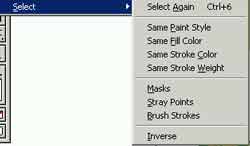 undo(撤銷)、redo(重做)、cut(剪貼)、copy(拷貝)、paste(粘貼)這幾個命令和大多數的軟件一樣,這里就不多講了。paste to front(粘貼到前面)paste to back(粘貼到后面)可以讓粘貼的圖形粘貼到前面還是后面。clear(清除)當然就是刪除你不想要的圖形。define patten(定義圖案)命令可以讓你把選擇的圖形定義為圖案。定義后我們可以從調色浮動面板上找到它。select all(全部選擇)命令可以選擇頁面上的所有圖形,這可以讓我們快速的選擇圖形而不至于遺漏一些被遮住的圖形。既然有全部選擇當然也有全部不選擇(deselect all),用法和全部選擇相反。在最后一個命令select(選擇)中有一個子菜單,可以讓你進行更精確的選擇。包括select again(重選)、same paint style(相同的筆樣式)、same fill color(相同的顏色)、same stroke color(相同的邊線顏色)、same stoke weight(相同的邊線寬度)、masks(蒙片)、stay piont(游離點)、brush strokes(畫筆筆觸)、inverse(相反)。可見軟件設計者考慮得非常的周到。