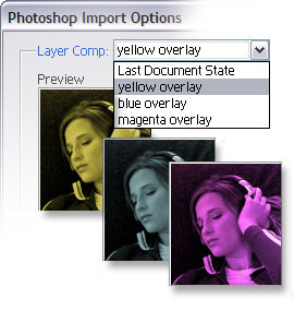在鏈接、牽套或打開的photoshop文件控制layer comp。