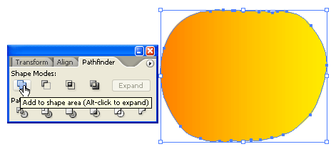 現在,我們要給南瓜鏤空的部分增加點立體感。用鋼筆工具,大致畫一個形狀加到左眼內。然后復制(ctrl+c)左眼并粘貼到前面(ctrl+f).選擇左眼和剛剛加入的形狀,在修正窗口內(shift+f9)按住alt點擊外形交集區域(intersect shape areas)。