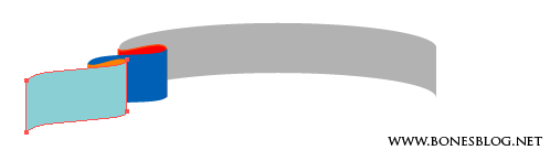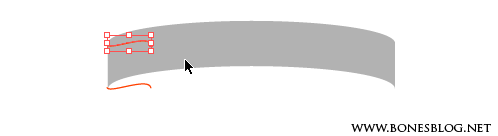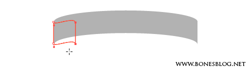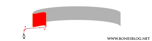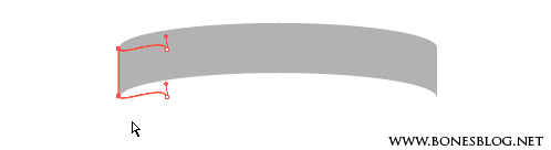 使用直接選擇工具選擇最末端的彩帶,然后用添加錨點工具在左側(cè)的中間位置單擊,此時將會在這里出現(xiàn)一個錨點