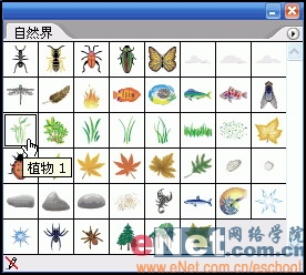 8.現在從工具箱中選擇“符號噴槍工具”,并單擊符號面板右上角小箭頭,從菜單中選擇“打開符號庫 自然界”,然后從打開的符號庫中選擇符號“植物1”,如圖10所示。