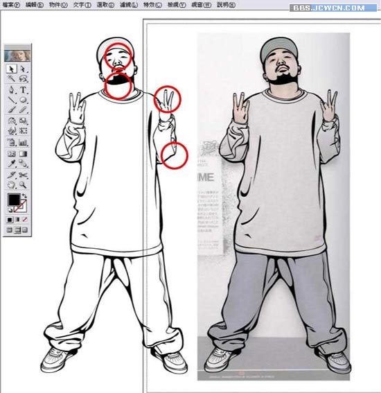 |||11.描好圖后如圖一所示,都是沿著人物輪廓拉出的封閉區域。