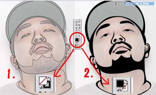 這樣的方式可以造成輪廓線段為單一色塊區域,方便接下來要填色時制作成卡通漫畫黑線稿的效果。