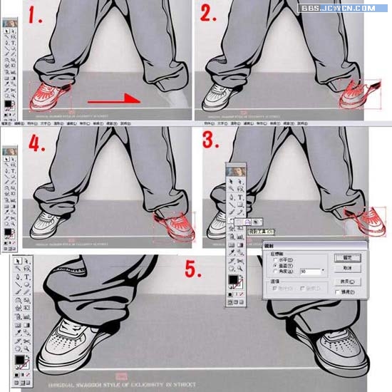 24.雙擊鏡射工具,出現鏡射選單,選擇垂直鏡射,確定后鞋子就換邊站啦。