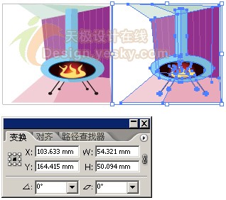 3.下面練習使用“變換”面板中的數字移動并復制對象。我們希望將該對象水平向右移動并復制出一個副本,而且移動的距離正好是該對象的寬度。